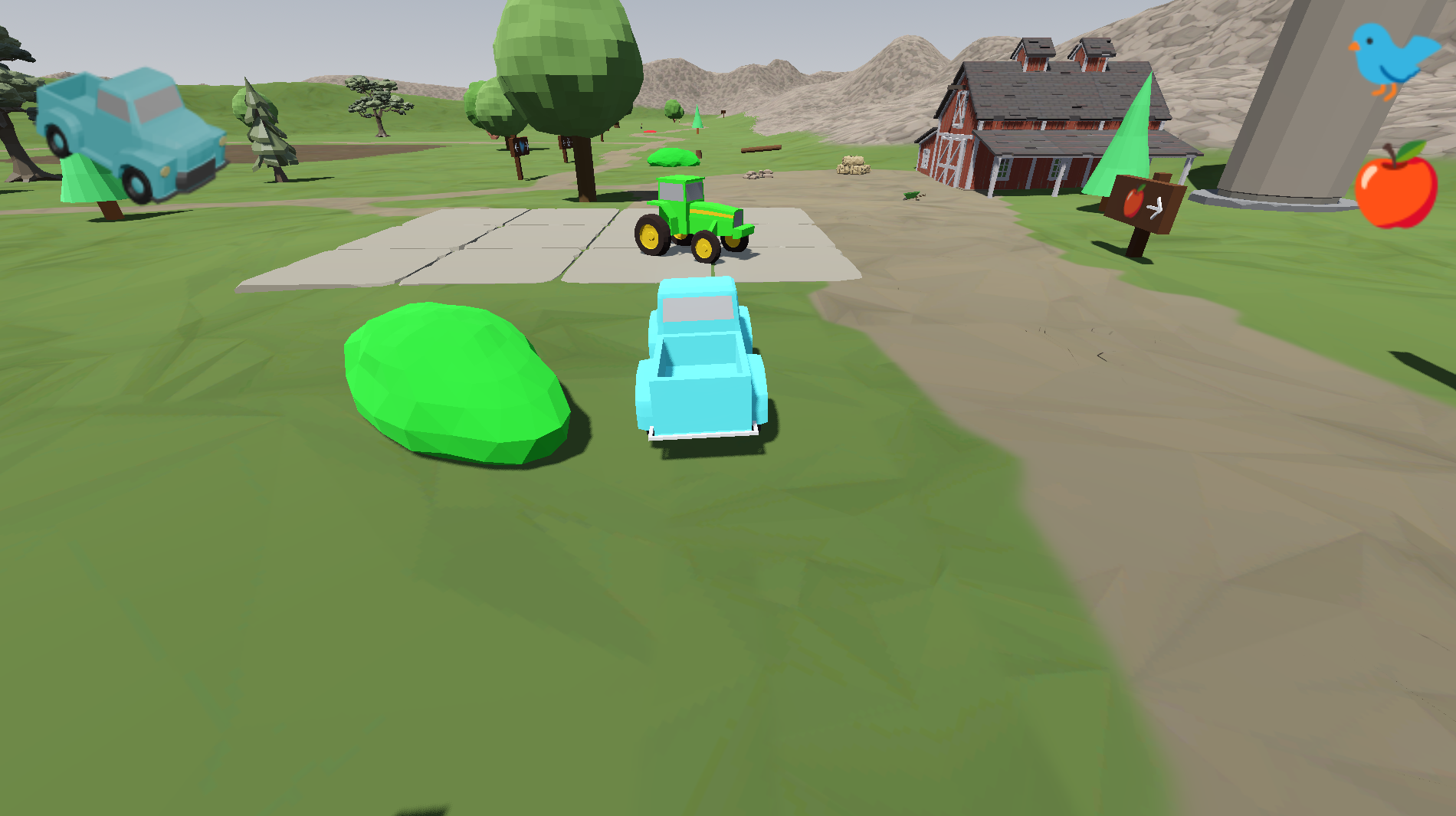 This is a simple simulation game which lets you emulate some facets of farm life. I am making this because my toddler really likes tractors, but most simulations are too complex or too arcade-like for young children. This is supposed to be a low-stimulation, relaxing game to play. Animals are going to be part of the farm, but none of the animals on the farm are intended to be food, they are either retired animals or raised humanely for either fur or eggs.